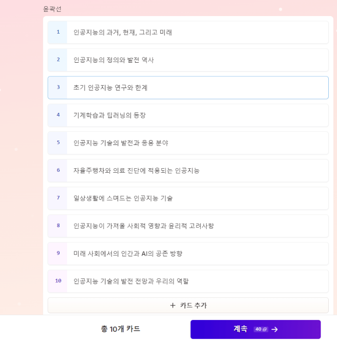 - 카드 스타일 지정: 슬라이드 색상 및 테마를 자동 변경